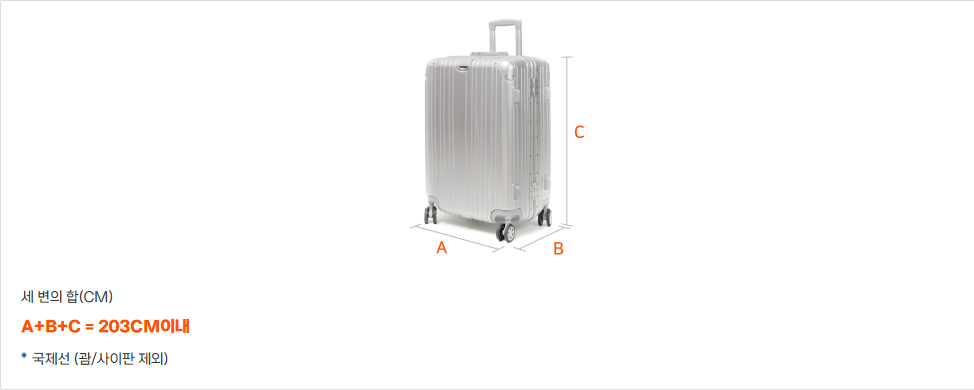 | 국내선 (특가 항공권) | 해당 없음 | 203cm |