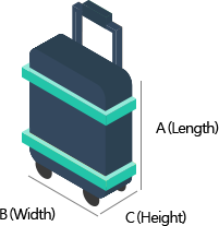 – 각 변의 최대치는 가로 40cm, 세로 20cm, 높이 55cm 미만 (손잡이, 바퀴 포함)