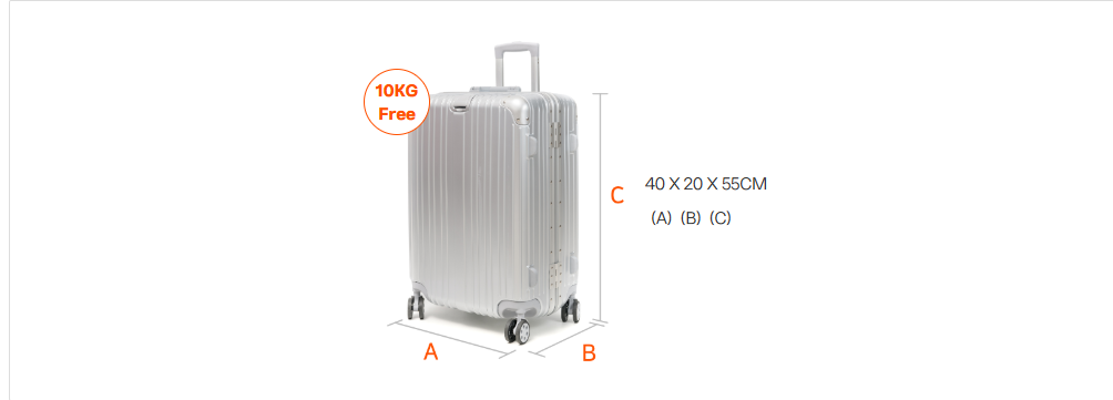 • 크기: 세 변의 합이 115cm(45in)이내 또는 55cm x 40cm x 20cm 이내 (손잡이, 바퀴 포함)